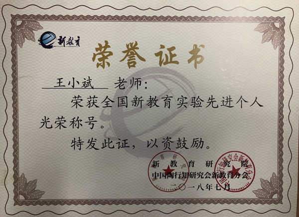会议隆重表彰了新教育实验年度人物、榜样教师、卓越课程、完美教室、先进个人。实验小学校长丁正后主编的《晨会国学微课程》荣获卓越课程提名奖,王小斌老师被评为新教育实验先进个人。
