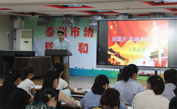 9月26日中午,在市幼儿园举行“迎国庆,英雄在我心中”主题演讲活动,经推选,有6名选手从初赛中脱颖而出,获得今天的决赛资格,幼儿园70多名教师聆听了她们的演讲。