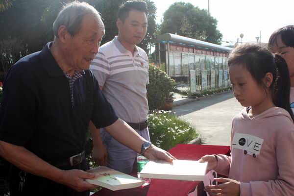 退休教师赵辉向渔行实校学生赠送新作小说《利剑》