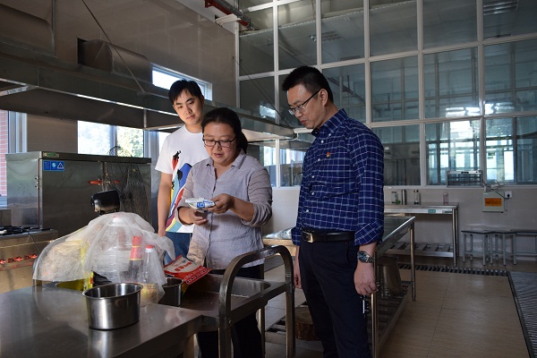 9月26日下午,市场监管局城东分局食药科科长朱桂芹一行来到大浦小学碧桂园校区检查食堂食品安全。朱桂芹一行查看了食堂的操作间、消毒间、备餐间、仓库等硬件设施和卫生情况,查验了食堂食品原料采购渠道、公用餐饮具消毒记录、食品留样、食品经营许可证、从业人员健康证、餐厨垃圾的处置等。对大浦中心小学碧桂园校区食堂给予很高的评价,认为学校食堂安全意识强,管理责任落实到位,配得上“A”级单位的光荣称号。同时,她还对食堂台账个别项目的记载提出了指导意见。