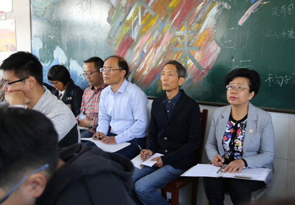 课后,二附中数学教研组长顾洪涛和曹文喜老师主持了评课活动,提出了一个大家容易忽视的问题就是“转场语言”的连贯性。一节课如何用语言自然衔接各个板块,而不是很生硬的“转场”,值得所有教师去思考。缪选民对这节课给予了充分的肯定,认为小结到位,常见辅助线和思想方法自然灌输给学生;重点突出,整节课都围绕垂径定理展开;变式到位,题目适当进行了拓展。备课组成员也分别发表了听课意见。