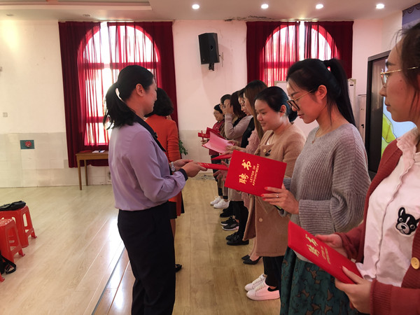 仪式上,李红梅老师宣读《儿教中心家校共同发展委员会章程》,副园长任冬美宣读《儿教中心家校共同发展委员会成员名单》,园负责人丁纪群和副园长徐静为新聘小班家委会代表颁发聘书。参会人员分组讨论,大家各抒己见,表示要积极动用自己身边的资源,为幼儿园贡献一份力。