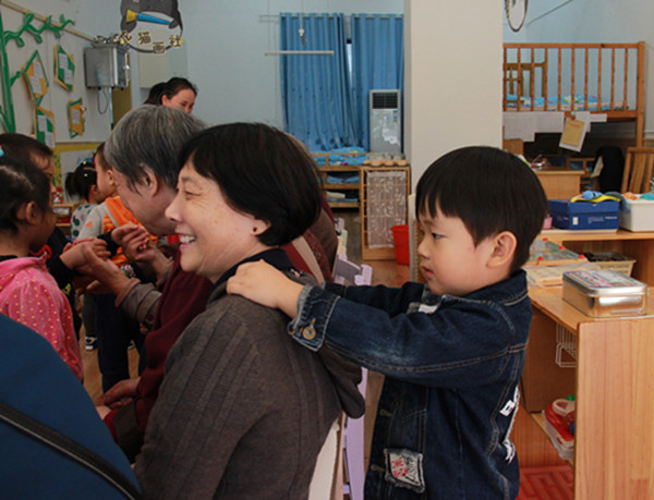重阳节前夕,市幼儿园邀请退休教师来园与孩子一起联欢,表达对老人的敬意和关心。
