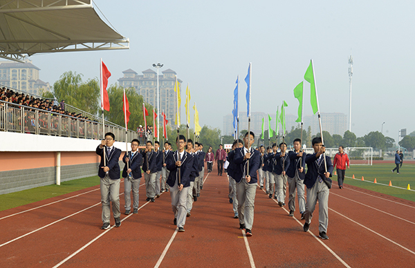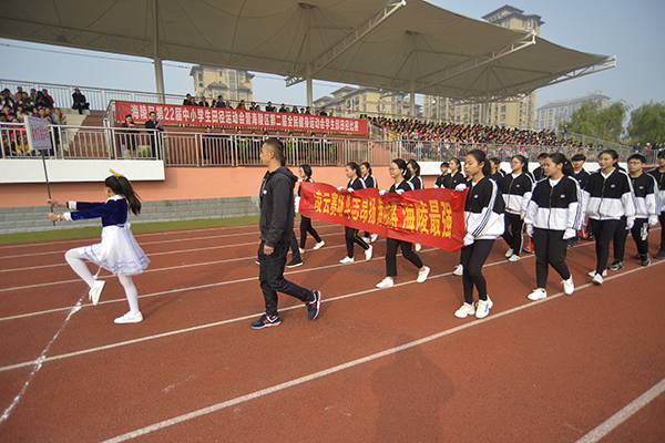 开幕仪式上,国旗队、鲜花队、彩旗队,裁判员队以及大浦小学、二中附中、智堡实验学校、民兴中学等20所中小学的运动员和领队排成方阵,身着统一服装,在装扮一致的女生引导员的引领下,迈着整齐的步伐,精神抖擞地通过主席台。大浦小学的运动员来了,他们挥舞着国旗,高举“大浦、大浦,力争上游!”的标语牌,高呼“大浦、大浦,力争上游!”的口号,雄赳赳,气昂昂地走过主席台。海军中学的运动员方阵,拉着“凌云赛场 斗志昂扬 海中健将 海陵最强”了横幅走过来了,团结一致,奋力拼搏,自强不息的海军精神在运动员的心中奔腾流淌。东道主智堡实验学校的运动健儿走来了,他们每人手里擎着彩色的气球,当他们经过主席台时,五颜六色的气球从他们的手中放飞,观礼台上,操场上立时响起呼喊声、掌声,为他们出色的表现鼓劲助威。