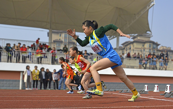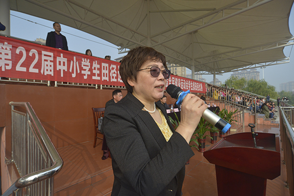 孙佳玲宣布海陵区第22届中小学生运动会暨第二届全民健身运动会学生部田径比赛正式开始。