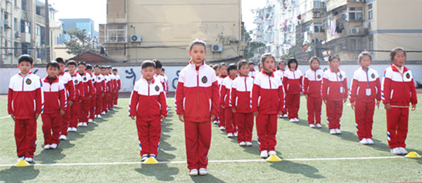 课间操时,伴随着运动员进行曲,同学们快速整理好桌上的物品,将椅子轻轻推至桌下,在教室走廊整齐地排好队,班主任带队,体育委员手执班牌,精神饱满,行进有序走向操场。放学时,各班散学路队伍要做到“静、快、齐”,班主任带队将孩子们有序地送到校门外指定的散学点。