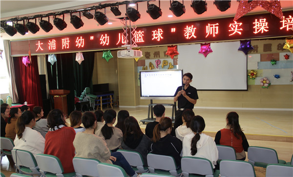 为更好地深入开展全园幼儿篮球运动。11月1日,大浦附幼邀请咏威亚太体智能少儿运动馆教练来园对教师进行培训指导。