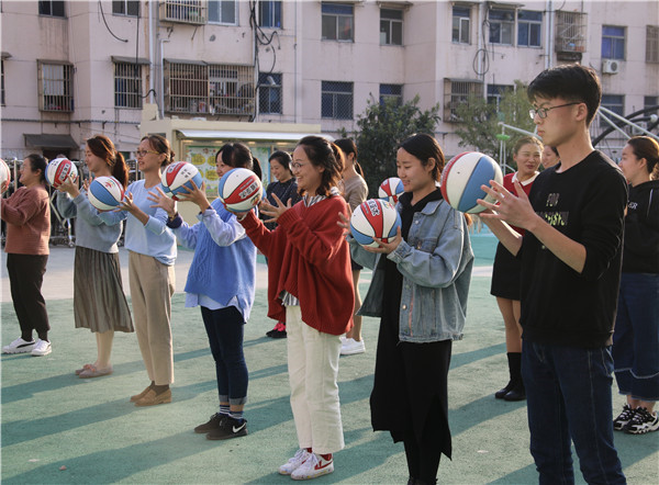 培训为“理论+实操”双模式。教师厅聆听了教练的理论讲解,观看了幼儿篮球活动的资料片。经学习,老师们知道了如何编排“篮球”操,如何为各个年龄段的幼儿设计篮球技能动作。随后,教师们跟随教练到操场练习、熟悉“球性”,学习不同年龄段幼儿选球、持球、抛球、拨球、拍球的方法,体验教学流程。
