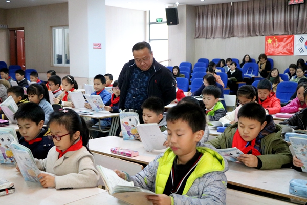 “语文第一课时如何教?”为了给全体语文教师解惑,加深教师对高效课堂的理解,11月28日下午,实验小学校长丁正后为全体语文老师上了一节语文示范课。