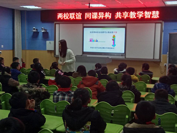 活动中,两所学校的三位教师徐荣芳、苏荔、章壮志为大家带来相同内容的课堂教学——《平移和旋转》。徐老师从学生平移和旋转的生活体验中逐步抽象出平移和旋转的本质特征,引导学生巧解将平移和旋转的难题;苏老师的课把学习的主动权交还给孩子,从学材的准备、教学重难点的突破,以及对孩子原有思维的自我修正和反思能力的培养方面均做到了以学生为中心,以问题为导向;章老师充分发挥孩子的主观能动性,让孩子思考如何做一个转盘,设计棋子的移动规则、做风车等操作,把平移和旋转的注意点无痕渗透,让孩子在悄然中掌握知识。