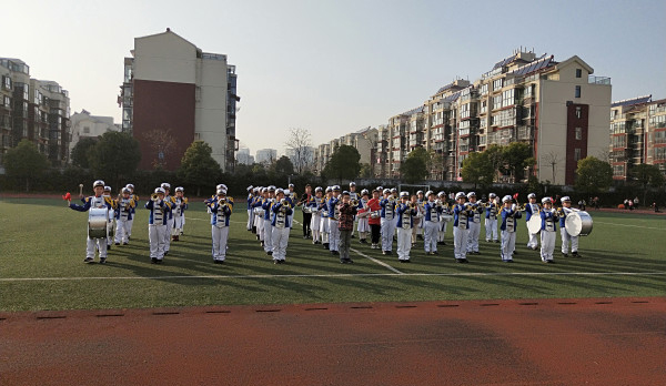 班会后,参会人员兴致勃勃地观摩了鼓号队的表演。队员们精神昂扬,步伐整齐,动作划一,在朱军华老师的指导下,鼓点打得铿锵有力、号声吹得欢快激昂,队形变得美不胜收,与会代表不断为队员的表演鼓掌。