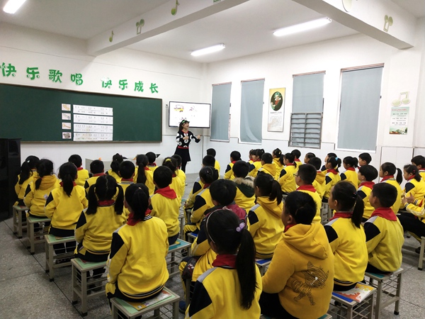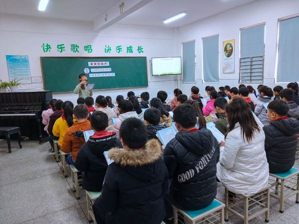 活动中,海光小学栾思颖、李悦两名青年教师分别执教四年级的《亲爱的回声》和一年级的《快乐的小木匠》。栾思颖让学生充分感受合唱中和声的效果。李悦老师创设情境,把歌曲教学中的节奏难点融入其中,让学生在反复听、唱、说、动中感受、理解歌曲的音乐形象。