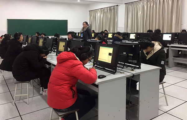 “素养考试”采用“人机交互”的形式,一次性完成音乐和美术的考试。今天送考的智堡实验学校音乐老师柏坤月介绍,音乐考试的题型有选择题、连线题、节奏题和演唱题,其内容出自七年级全册、八年级全册和九年级上册五本教材之中,涉及到的音乐知识相对比较简单,都是一些生活中经常能听到的经典音乐片断,乐理知识则是一些的简谱基础知识。学生比较容易失分的可能是演唱题。“只要上课认真听,课后将演唱的曲子多练习练习,就能取得一个比较好的成绩。”柏老师说。