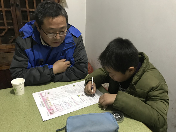 申祖鹏老师到汤子奥家中时,爷爷汤石林正为辅导孙子的寒假作业而发愁,他告诉申老师:“孩子的爸爸妈妈都在新加坡打工不能回家过春节。”申老师安慰汤石林,他会在每天上午为汤子奥辅导作业。汤石林激动地说:“你们老师真是急学生所急,想家长所想!”
