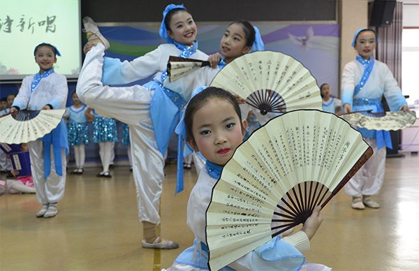 大浦小学开展艺术教育可以追溯到25年前,当时学校开设了两个艺术班,培养了刘倩、陆嫣然等一批优秀艺术人才,一时在全区引起轰动,此后学校的艺术教育历经曲折,如今艺术教育之花又在校园盛开。学校开设小百灵合唱队、小孔雀舞蹈队、小梅花京剧团等艺术社团活动,每年举办“小荷艺术节”活动。今年“小百灵合唱队”表演合唱《编花篮小景》《当我们小的时候》和京剧说唱节目《梅韵京腔颂凤城》获得全市艺术展演小学甲组一等奖,在江苏省中小学生艺术展演活动中,该合唱队以天使般的歌声,动情的演唱,打动了评委老师和观众,喜获全市唯一的全省一等奖,在全市校园足球啦啦操大赛中学校又荣获小学组一等奖。前不久,学校又传来好消息,六(3)班李睿君和五(4)班李文淇同学参加少儿版电影《杨门女将》的演出,她们在剧中分别扮演佘太君和穆皇妃。