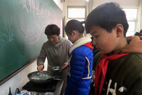 热闹的春节过后,留守儿童与父母短暂相聚后又是长时间的分别,孩子们的情绪有点低落。渔行实校的女教师们看在眼里,急在心里,怎么办?她们把留守儿童召集起来促膝谈心,一起朗读,孩子们沉浸在温馨的氛围中。一声“汤圆来喽”让孩子们兴奋不已,原来夏如玉等老师为孩子煮了一大锅甜甜的汤圆,孩子们津津有味地吃着,品尝家的味道。