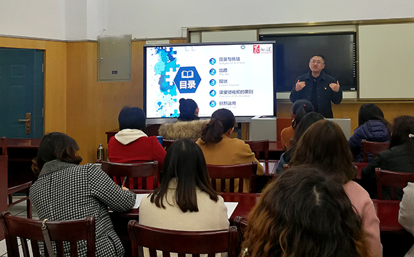 活动中,海陵区初中英语研训员徐晓生为大家做了一场题为“人工智能·职业危机·泰微课——从课程意识到‘泰微课’到创新运用”的专题讲座。他建议英语老师要正视人工智能给教师带来的潜在职业危机,以课程意识为指引,从提升教学质量的实际需要出发,从个例走向系统、从知识走向运用、挖掘课本需要、捕捉身边资源创新运用“泰微课”,切实提高教学质量。