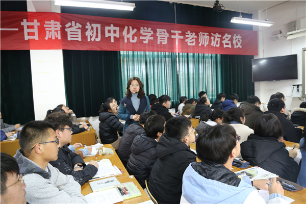 近日,泰州市教科所所长高兴邦带领甘肃省“国培计划•初中化学骨干教师访名校”代表团一行46人到泰州二附中开展化学教研经验交流,二附中化学组王石和仇璇老师为他们上了两节展示课。