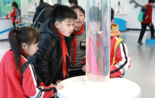 在泰州科技馆,同学参观了儿童科学乐园展厅、探索与发现展厅、幻影剧场。“勾股定理”“多棱镜”“绳波”……展馆里数不清的科学实验同学们都可以动手试一试,神奇科技世界让同学们流连忘返。