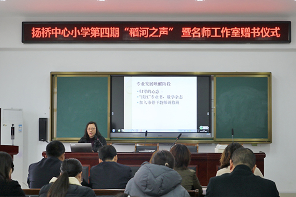 扬桥小学坐落在稻河边,学校把论坛活动命名为“稻河之声”,至今已经举办了四期。活动中,学校名师工作室的导师们给工作室全体成员赠书。校领导从读书与提高教师的自身修养、读书与激发教师课堂教学机智、读书与提升教师解决实际问题能力等方面作了动员讲话。希望老师们树立终身学习的理念,养成“多读书”、“读好书”、“好读书”的习惯,不断丰富科学人文底蕴和教育教学理论素养,促进自己专业化成长。