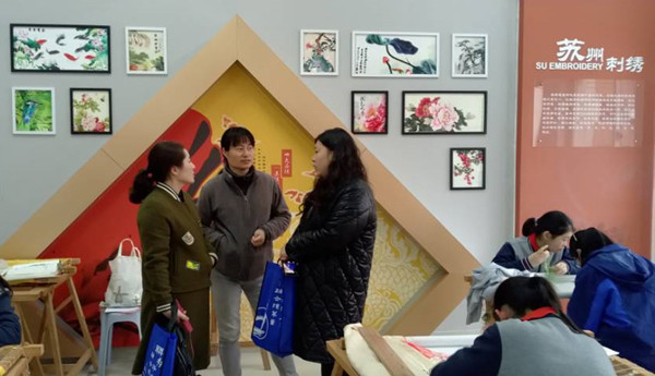 据介绍,苏州彩香实验中学根据地域文化和校园文化特色开设了50多个学生社团。海军中学代表团观摩了该校的苏绣、核雕、葫芦丝、动漫设计、创意机器人、未来工程师等社团活动。沈洁老师了解该校社团的教学方法、资金来源等问题。
