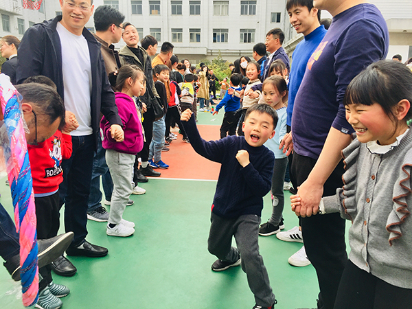 一(5)班顾佳淇妈妈感慨地说:“亲子活动前一天,老师在班级群给我们分享了亲子活动示范视频,当时还没这么触动,今天和这么多孩子、家长共同参与其中,特别震撼,以后一定要挤出更多时间陪伴孩子!