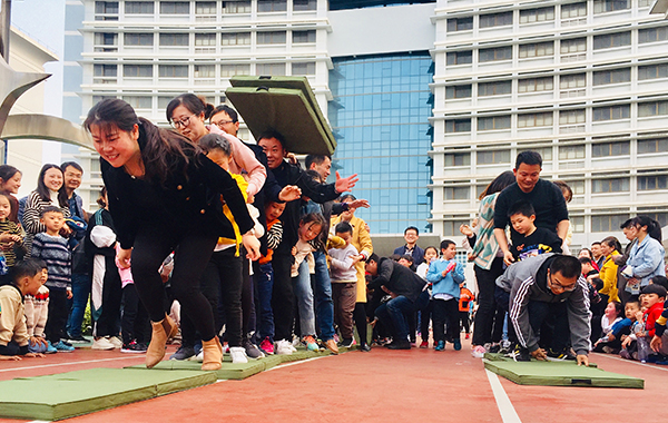 亲子互动开始了,家长拉着孩子的手,在老师的引导下来到操场。家长观看小朋友们展示大课间的舞蹈。明媚的阳光下,亲子“钻山洞”“传呼啦圈”“抢瓶子”花样篮球接龙”“ 滑溜布PK赛”……笑脸盈盈,笑声荡漾,手机、相机齐上阵,记录这美好的欢乐时光。