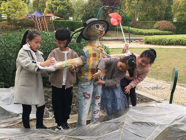 扎个“草人”看菜园 来源:大浦附幼 作者:陈肖雅 发布时间:2019-04-15 浏览次数: 次 【字体:小 大】 大浦附幼碧桂园分园有一块空地,春天里孩子们在空地里种上各种果蔬的种子,没想到的是天上的小鸟居然把种子扒出来吃了。这可怎么办呢? 孩子们想到了“稻草人”,他们想请“稻草人”为他们的菜园“值班”。在老师的指导下,孩子们画“稻草人”的图样,找来了稻草、旧衣服,旧帽子,大家忙活了一阵,可爱的“稻草人”扎好了。 “有了它,我们的菜就不怕小鸟了。” “它真的很像人呀,眼睛嘴巴还有手,比我还高。” “它戴的我妈妈的帽子,真好看。” 孩子们看着自己的杰作都不愿离开…… 分享到: 【打印正文】 相关内容