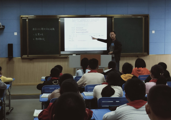 鞠友春老师在六年级数学“抓住不变量解决实际问题”教学过程中,把数学题目和“读书强国”“学习消防员的英勇精神”等德育内容相结合,有机的融入德育素材,学生不仅学到了数学知识,还培养了良好的意志品质,充分体现了把德育融入到学科教学中的教学目标。