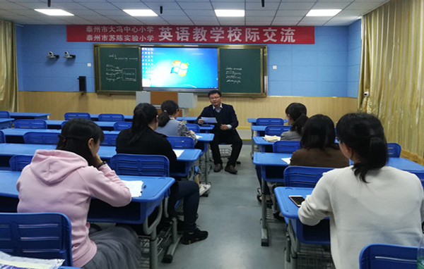 4月25日下午,泰州市苏陈实验小学英语教研组一行3人到大冯中心小学开展英语课堂教学研讨活动。活动在大冯小学三楼录播教室举行。