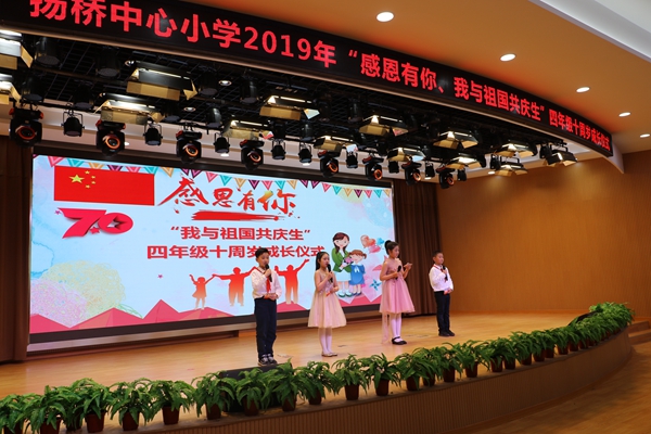 4月26日下午,扬桥小学四年级师生、家长欢聚一堂,参加“感恩有你,我与祖国共庆生”十周岁成长礼仪式。海陵区教育局责任督学徐松涛主任、陕西长武县两所小学的跟岗交流校长参与了此次活动。