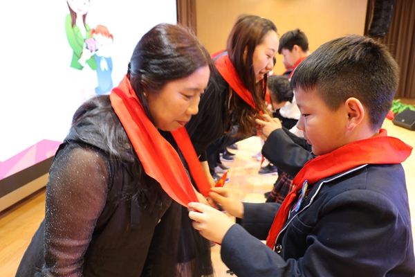 校长刘元海首先为活动致辞,他希望孩子们常怀感恩之心,成为懂得健康生活、懂得智慧学习,有着优秀品质和爱心的新时代好少年。同学们在感恩祖国、感恩父母、感恩老师的活动环节中表达自己对祖国、结师长的爱,他们在大队辅导员陈晨老师的带领宣誓做一个有良知、有骨气、有教养、有毅力的人!