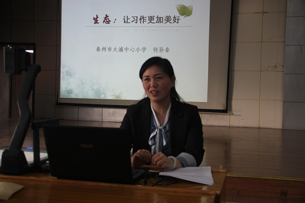 在课堂展示活动中,泰州市大浦中心小学青年教师方晶、仲璟、毛茅、全梅四位老师分别在三至六年级教授写人的习作课。方晶老师执教三年级习作指导课《抓住特点写人物的外貌》,她让孩子们仔细观察同桌,带领孩子们抓住特点有顺序地介绍人物外貌,整节课,写——改——评,孩子们的习作逐步得到提升。仲璟老师执教四年级习作指导课《雏鹰争章——推荐他人》,仲老师以班级学生的周记为例文,结合学生读书照片,引导学生通过具体的事例写出人物的特点,注意细节描写,要快速练笔,一气呵成,整个教学过程扎实有趣,让学生易学好写。毛茅老师执教五年级习作指导课《寻找身边的小能人》,毛老师用照片和视频的形式,引导学生通过正面、侧面描写篆刻大师的形象。全梅老师执教六年级习作指导课《介绍家乡的名人》,她以思维导图的模式,引导学生选择最能反映人物特点的事例来写,以具体事例反映出人物的精神品质。
