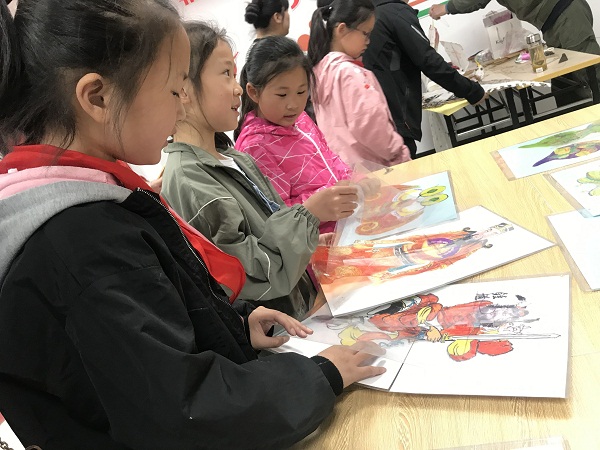 一走进朱万元的风筝工作室,孩子们被眼前各种各样,花花绿绿的风筝吸引了。蜻蜓、蝴蝶、猫咪、蝙蝠……个个栩栩如生。尤其是朱万元手上的那只老鹰,都是真的羽毛一根一根插上去的,更显得活灵活现。朱万元告诉孩子们,他做的蜈蚣、龙风筝,长的有40米到60米,小的只有巴掌大,称为“掌中宝”。