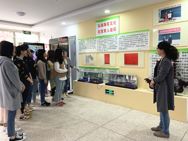 城东附属幼儿园团员教师到泰州市海军中学参观 来源:海军中学 作者:魏爱芳 发布时间:2019-05-10 浏览次数: 次 【字体:小 大】 5月9日下午,城东附属幼儿园团员教师一行18人到泰州市海军中学参观交流。她们参观了海军中学军舰景观区、海军诞生地纪念馆海军中学分馆、校园文化布置等,了解海军中学的校园文化建设和办学特色,团建工作以及在日常的教育教学活动。 分享到: 【打印正文】 相关内容
