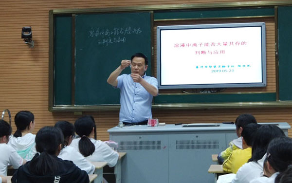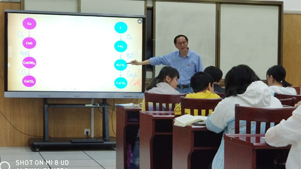 目前,全区中考二轮复习进入冲刺阶段,围绕“优化教学设计,提高二轮复习实效”这一主题,中学研训部部长夏国顺、名师工作室领衔人陆桂斌老师分别展示了《物质的转化与推断》、《溶液中离子能否大量共存的判定与应用》两节示范课。两节课虽然教学内容不同,但教学设计却有异曲同工之妙:主题聚焦——优选一个复习主题,将零散、碎片化的知识进行整合重构,引导学生自主建构知识网络、自主学习,拓展了二轮复习的广度和深度;问题引导——基于问题解决精心设计问题链,让学生带着问题去思考,强化高质量的练评,通过“小先生”、小组合作、讨论、展示等形式,保证了复习课上学生“在学”、“真学”,提高了复习课的质量;任务驱动——创设有意义且真实的教学情境,精选典型题例,结合学科特色,注重化学学科思想、学科方法、学科观念的建构,提升学生思维品质和化学学科素养。