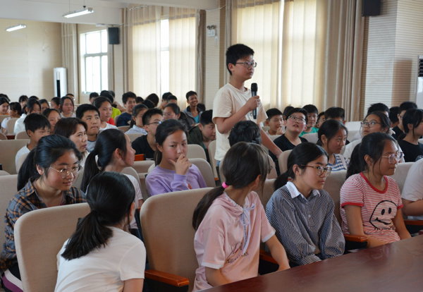 “什么是道德?”“为什么要讲道德?”“如何弘扬道德精神?”一开场,主持人的三个问题引发了全场学生的思考与反省。随后,大家高唱《公民道德歌》,观看短片《天堂的午餐》,齐诵中华经典《弟子规》《道德经》,一起接受经典道德的熏陶和洗礼。接下来的讲故事环节,张雨健同学为大家讲述了甘肃少年张晓边上学边侍奉瘫痪母亲的事迹。同学们被张晓的孝行深深感动,畅谈起自己身边的道德榜样,班级同学、小区保安、校内清洁阿姨……最后,在全体学生“做有‘德’之人”的承诺中为活动画上了圆满句号。
