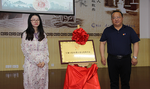 仪式上,领导们为4支“大城小爱365微心愿志愿服务队”授旗,为服务站揭牌。