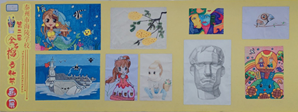 海陵学校小学部开办学生书画展,300幅水彩画、水墨画、手工制作等入选展出。该校还开展了“掌上明珠”、“传声筒”、“一圈到底”、“巨人脚步”、“同心协力”等二十多个游艺项目。