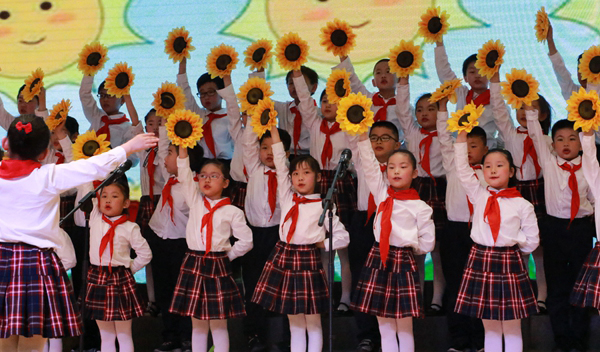 泰州市少年宫海娃艺术团的孩子们参加全市“花开向阳,逐梦未来”庆“六一”主题活动,孩子们表演了舞蹈《花开新时代》、音诗画《少年梦 中国梦》等节目,赢得了在场观众的热烈掌声。