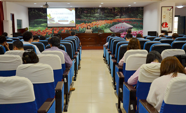 海陵学校党总支书记王伟为学校各支部70多名党员上党课——《弘扬沈毅精神 争做育人先锋》。王伟的党课从一曲传唱至今的沈毅烈士所作《醒农歌》开讲,以“初心”和“使命”入题,列举海陵区教育工作者在推进教育改革的实践中的担当与创新。为理想回报家乡的全国模范教师、江苏省特级教师顾广林,在三尺讲台书写家国情怀的好军嫂、海陵学校教师陈彦妤都是王伟的党课素材。她说,优秀共产党员共同的本质特征是吃苦在前,享受在后,克己奉公,多做奉献。她勉励党员做协调家庭、学校、社会教育的桥梁纽带,做弘扬中国特色社会主义文化的传承者,做促进学生健康成长的引路人,做推进教育改革的实践者、创新者、担当者。