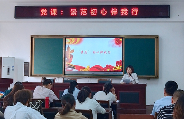 扬桥小学党支部书记张琴为全体教师上 “景范初心伴我行”专题党课。她从北宋政治家、思想家、军事家、文学家——范仲淹与泰州、与教育的渊源讲起,给全体教师介绍了“景范”的含义,景范者,实乃景仰范仲淹也。
