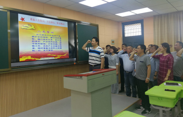 党课快结束时,学校党总支书记韩根齐带领全体党员重温入党誓词,齐唱《走向复兴》,感受国家发展取得的伟大成就,用铿锵的歌声表达自己坚定的理想信念。