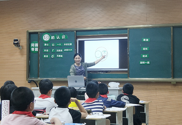 活动中,智堡实验学校的黄媛媛老师执教二年级上册《认识平行四边形》、吴媛老师执教三年级上册《认识长方形和正方形》,城东中心小学的胡寿芹老师执教五年级下册《圆的认识》。三位老师从学生熟悉的物体中抽象出图形,围绕图形特征展开教学,通过画一画、拼一拼、折一折、比一比,让学生在玩中学、学中思,在体验中习得知识、生长思维。