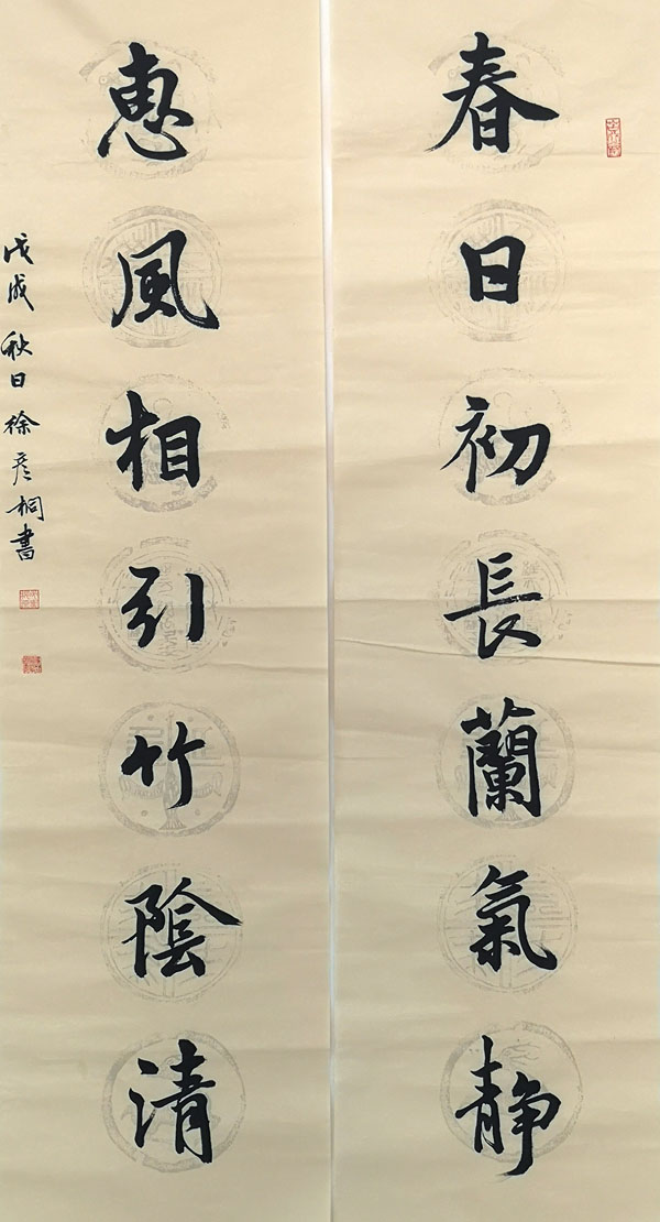 作品名称:《行书“春日春风”七言联》