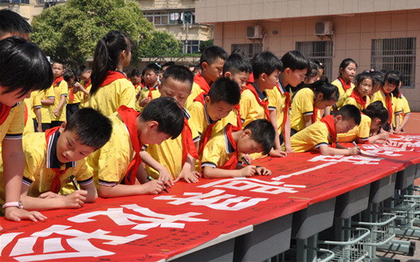 命名仪式上,城西街道党工委书记孙乾和海光小学校长窦平共同为三(1)中队授“龙珍中队”旗,队员们在横幅上写下他们对孙龙珍烈士崇敬之情。据悉,6月4日,城西街道的有关领导们将启程前往新疆,带上孩子们的书信、绘画、留言慰问孙龙珍烈士的家人,为他们带去家乡人民的追思和牵挂。
