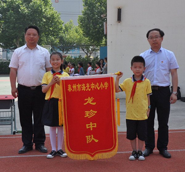 6月3日上午,海光小学在学校操场举行“追寻孙龙珍”主题活动,命名三(1)中队为“龙珍中队”。