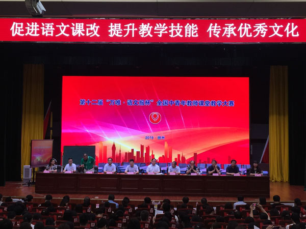 大赛在扬州中学举行,历时4天。主题为“促进语文教改,提升教学技能,传承中华文化”,参赛选手为各省(市、自治区)以及新疆建设兵团中语会选拔出的优秀中青年教师。初中组分“古诗词”“写作”“文言文”“散文与小说”“演讲与科普”五个竞赛单元。15位选手以深厚的教学基本功呈现了风格各异的精彩课堂,5位单元点评专家以严谨科学的专业态度进行了鞭辟入里的现场点评,在直观的教学实践和科学的教学理念的启发引领下,现场观摩老师对如何在课堂教学中将语文核心素养真正落实进行了深入的思考。