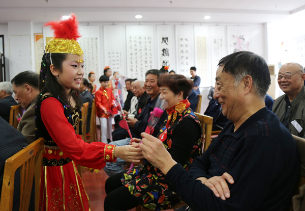 少年儿童和老干部欢度重阳节 来源:少年宫 作者:申慧惠 沈予微 发布时间:2017-10-27 浏览次数: 次 【字体:小 大】 10月27日下午,泰州市少年宫的孩子们来到海陵区老干部局,和那里的30多位老干部提前共度“重阳节”。孩子们表演的民乐小合奏《最炫民族风》拉开了活动的序幕,赢得了爷爷奶奶们的热烈的掌声。随后,孩子们与老干部们互动游戏、为他们表演节目,气氛温馨而美好。活动结束时,老干部与孩子们欣然合影,留下了一张张欢乐的笑脸。老干部们说,孩子和我们在一起,让我们感受到青春与活力,感谢孩子们陪我们度过一个不一样的重阳节。 分享到: 【打印正文】 相关内容