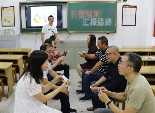 汇报中,孟维老师详细介绍了加拿大教师Astrid selles的教学策略,如Face to Face(面对面)、Rotation conversation(轮换会话)、Thumbs down / Thumbs up(拇指向下、拇指向上)、Rewards/Candy(奖励/糖果)、4 Corners(四角策略)、Ball toss(抛球)等等。孟维老师表示暑期间这两周的培训,他受益匪浅,既学习到了外籍教师灵活多样的教学方法、策略和先进的教学理念,又领略了外籍教师纯正的英语发音及对教育事业的敬业精神。